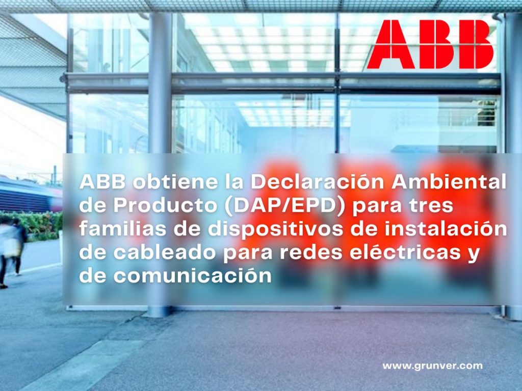 Asea Brown Boveri, S.A. (en lo sucesivo, ABB), con el apoyo técnico de Grunver Sostenibilidad, ha obtenido las certificaciones de Declaración Ambiental de Producto, bajo el Programa de verificación PEP ecopassport, para tres de sus familias de dispositivos de instalación de cableado para redes eléctricas y de comunicación, de acuerdo con la norma ISO 14025:2010. […]