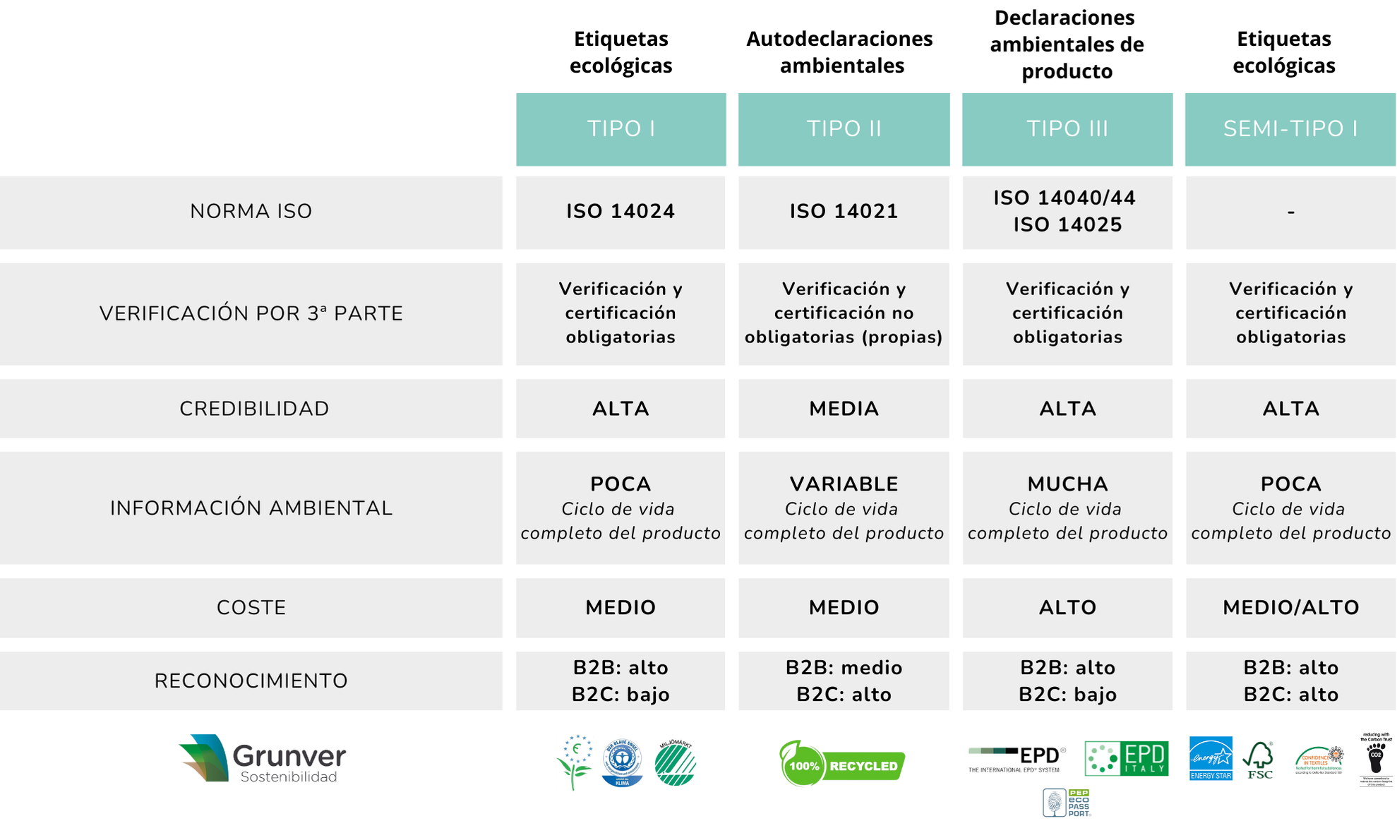 En Grunver Sostenibilidad contamos con una amplia experiencia en el apoyo y asesoramiento en el etiquetado ambiental, destacando la implantación y certificación de ecoetiquetas del Tipo II o Tipo III (declaraciones ambientales de producto (EPD/DAP)) en sectores diversos, desde el sector agroalimentario al sector eléctrico-electrónico. Proyectos destacados para empresas como: ABB, Ingeteam, MESA, entre otros.